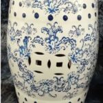 Seat Gardem de cerâmica branco, decorado com flores azuis.
